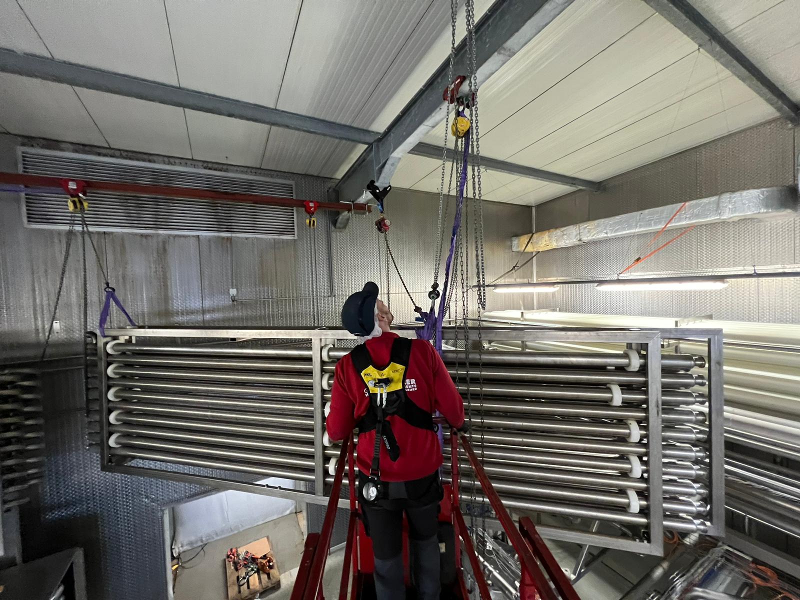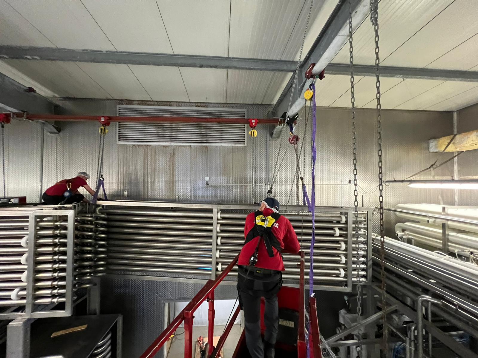 For one of our clients, we carried out the internal swap of two pasteurisers in a limited technical space. Due to the limited accessibility and available lifting height, a customised lifting solution was chosen.