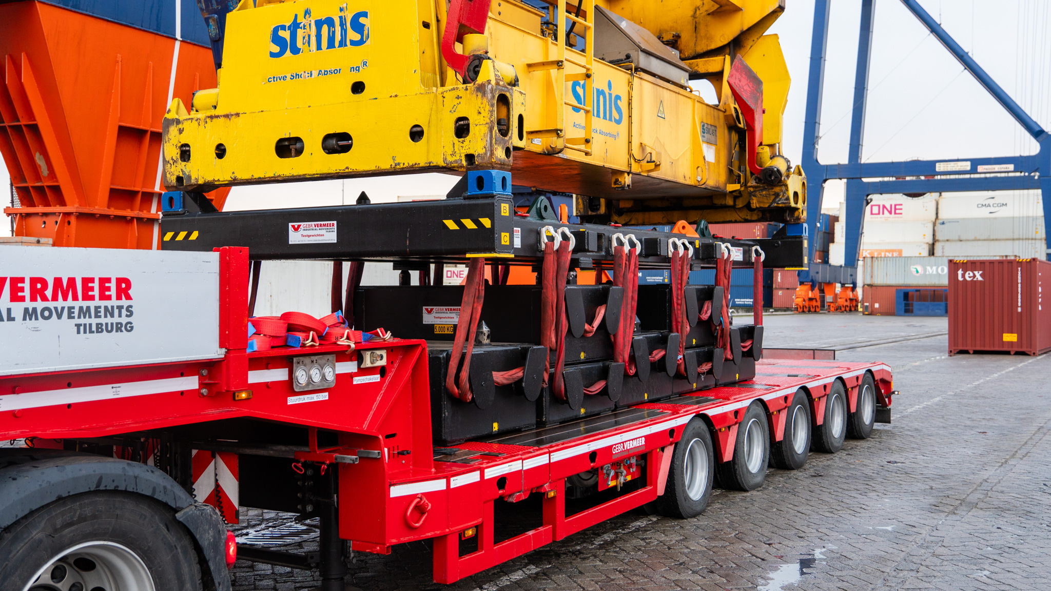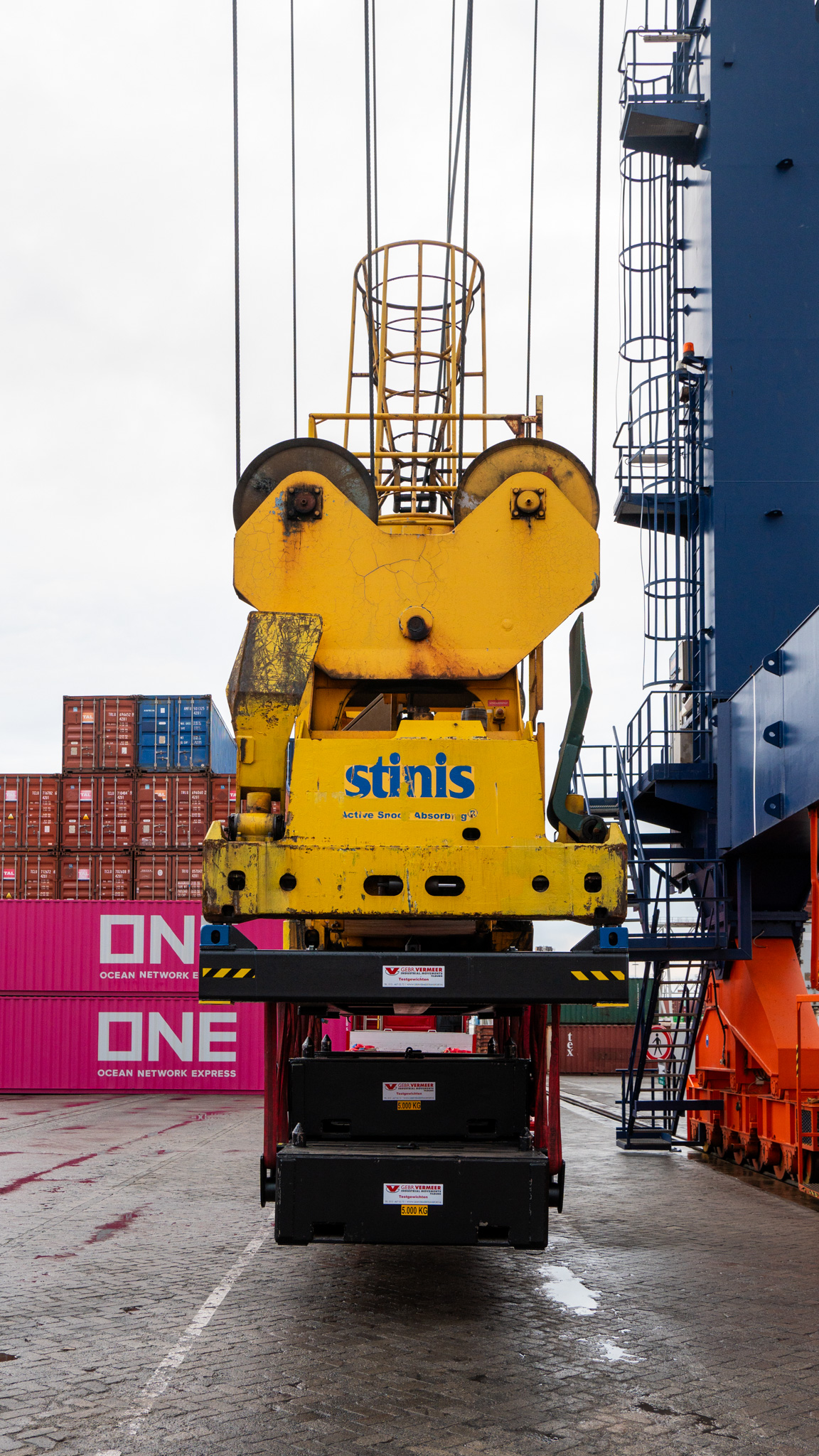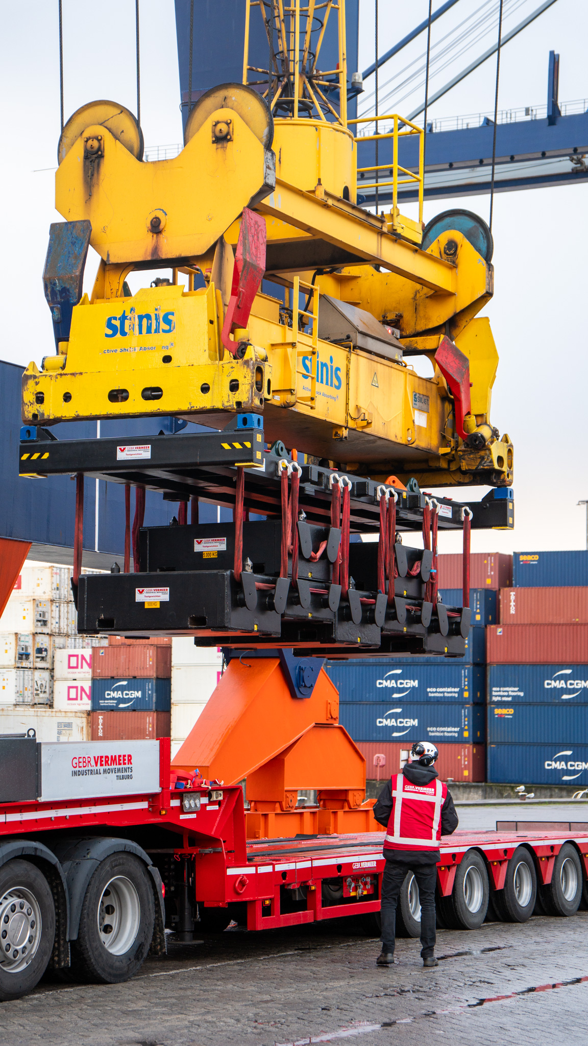 Het frame met gewichten is met een trailer onder de kraan gereden. Middels twistlocks is het geheel gekoppeld aan, waarna de testbelasting is uitgevoerd. Deze aanpak maakte een veilige, representatieve en efficiënte test mogelijk, zonder extra handling van individuele gewichten op locatie.